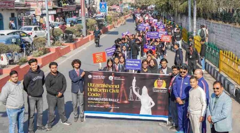 यू0सी0सी0 के सम्बंध में आमजन को जागरूक करने के उद्देश से निकाली गई जागरूकता रैली परेड ग्राउंड से प्रारम्भ होकर दर्शनलाल चौक, घंटाघर होते हुए रेर्जस ग्राउंड में समाप्त हुई। रैली के दौरान ग्राफ़िक एरा तथा डी०आई०टी० के छात्रों द्वारा पोस्टर, बैनर्स तथा स्लोगन के माध्यम से ’’ वन नेशन वन कोड ’’ का समर्थन करते हुए आमजन को यू०सी०सी० के संबंध में किया जागरूक किया गया। इस दौरान उनके द्वारा यू०सी०सी० को कानूनी एकरूपता और सामाजिक न्याय को बढ़ावा देने वाला कानून बताते हुए नागरिक कानूनों में समानता और निष्पक्षता सुनिश्चित करने में यू०सी०सी० के महत्व के संबंध में आमजन को जागरूक किया।