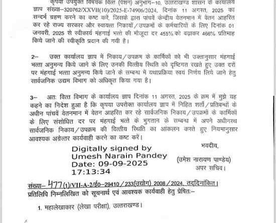 उत्तराखण्ड सरकार ने कर्मचारियों को दी बड़ी राहत, निगम और उपक्रमों के लिए 11% महंगाई भत्ता बढ़ाया